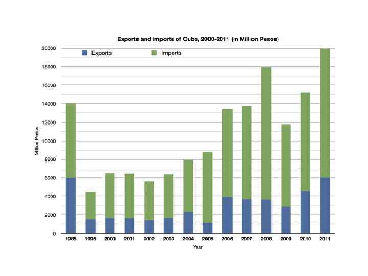 Крушение социалистической системы вновь, как и в 1959 г. , поставило перед народом Острова Свободы комплекс острейших экономических проблем. Страна потеряла 80 % своих рынков, на которые приходилось до 70 % импорта и более 80 % экспорта. Кроме того, Куба лишилась постоянного на протяжении более 30 лет источника финансовой помощи на очень льготных условиях. Все это привело к резкому падению ВВП и обострению положения во многих отраслях экономики, во внешней и внутренней торговле, в различных сферах общественной жизни.