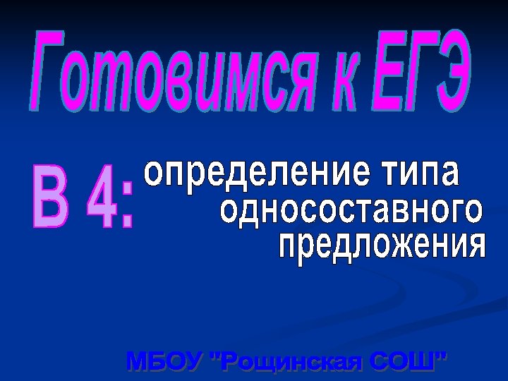 Домашнее задание: Прорешать в КИМах В 4, проверить себя по ответам n Составить диктовку из 8 -10 предложений, в которую входили бы простые односоставные и сложные, в составе которых есть односоставные n