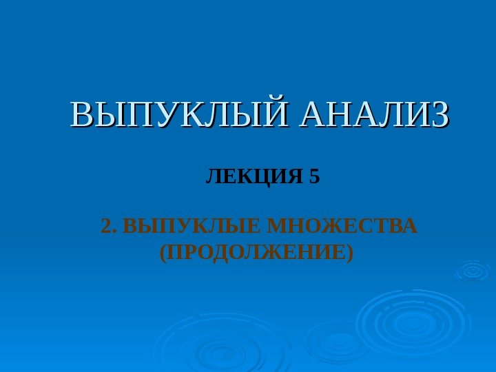 Описание презентации ВЫПУКЛЫЙ АНАЛИЗ ЛЕКЦИЯ 5 2. ВЫПУКЛЫЕ МНОЖЕСТВА (ПРОДОЛЖЕНИЕ) по слайдам