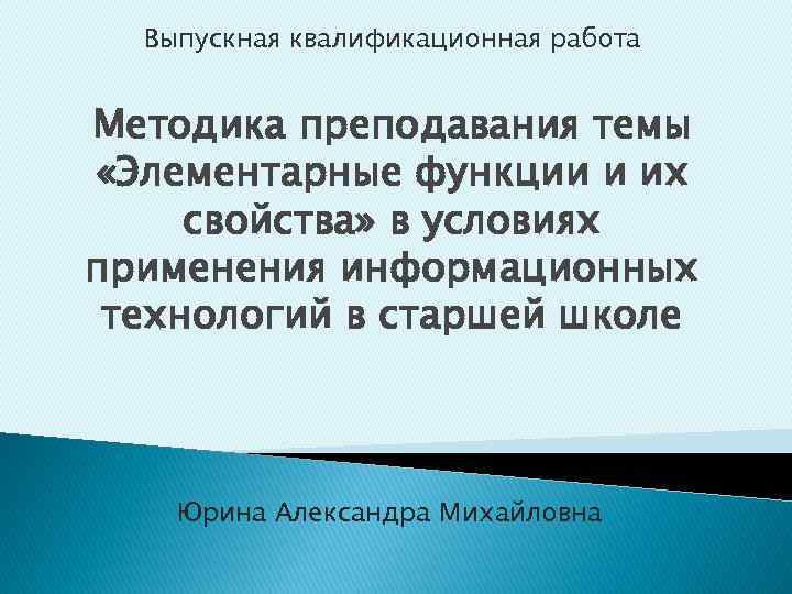 Выпускная квалификационная работа Методика преподавания темы «Элементарные функции и их свойства» в условиях применения информационных технологий в старшей школе Юрина Александра Михайловна