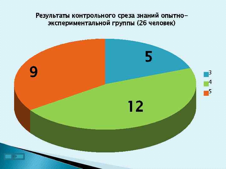 Результаты контрольного среза знаний опытноэкспериментальной группы (26 человек) 5 9 3 4 5 12