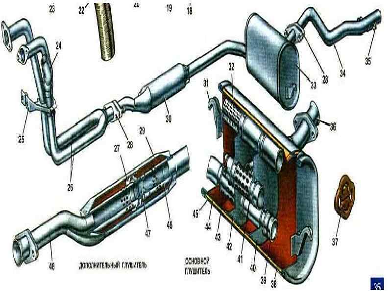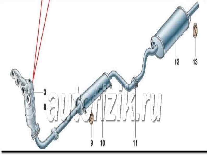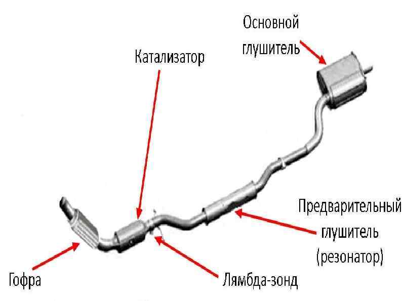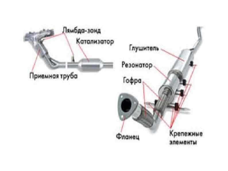 Все конструктивные элементы выпускной системы расположены под днищем автомобиля
