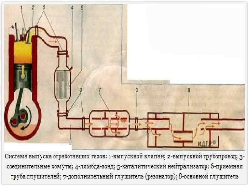 Система выпуска отработавших газов - предназначена для отвода отработавших газов из цилиндров двигателя, их охлаждения, а также снижения шума и токсичности