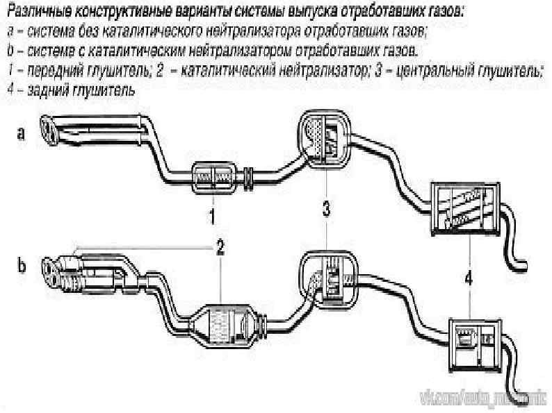 На выходе к нему присоединяется каталитический нейтрализатор или выпускная труба