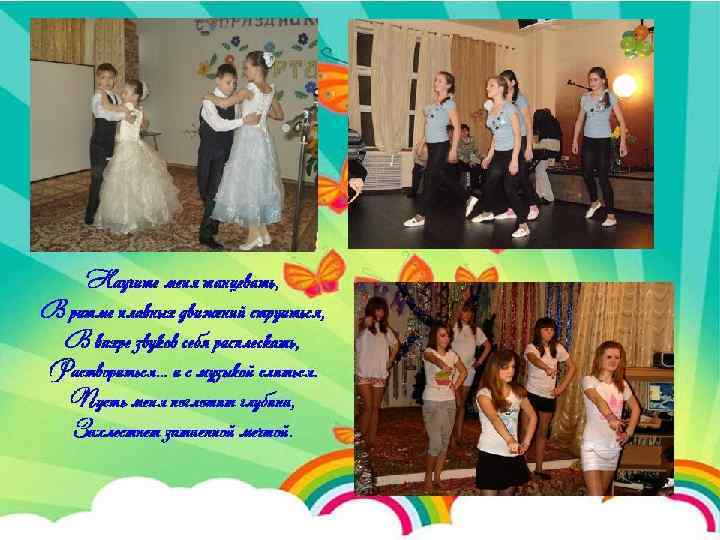 Прекрасно хочет танцевать любой ребенок Для этого серьезно нужно изучать хореографию с пеленок И днем и ночью танцевать, не замечая время А может просто отдыхать среди всего веселья? Нет, это все не так! И кто придумал это? Чтоб танцевать нужно понять, что танцы в жизни не помеха.