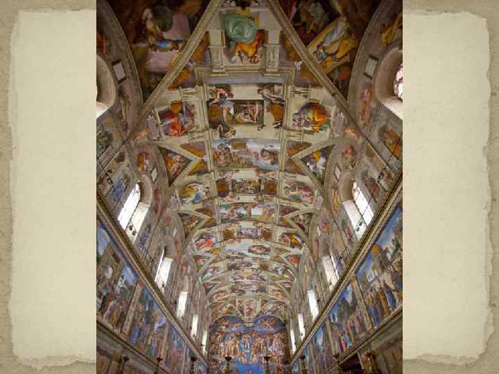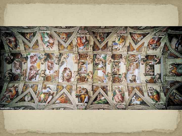 В 1508 году папа Юлий II дал Микеланджело заказ – сделать роспись потолка Сикстинской капеллы в Ватикане. Размеры будущей росписи превышали 600 квадратных метров! В невероятно трудных условиях, лёжа на спине на высоких лесах, художник сам, без помощников, воссоздал в огромной фреске на потолке капеллы библейскую легенду.