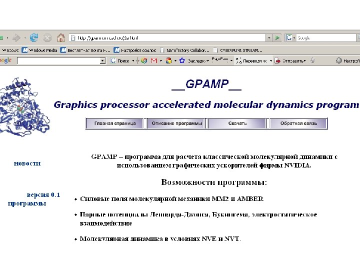 Как выглядит молекулярная динамика (молекула белка в растворе) 35000 атомов. Траектория рассчитана программой GPAMP на видеокарте Ge. Force 8800 GTS