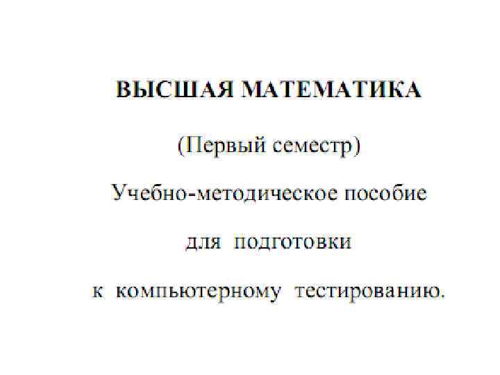 Литература • Дымков М. П. , Конюх А. В. , Майоровская С. В. , Петрович В. Д. , Рабцевич В. А. Высшая математика (1 семестр): Учебнометодическое пособие для подготовки к компьютерному тестированию. Мн. : БГЭУ, 2011. ─ 27 с. На сайте кафедры: http: //bseu. by/hm/uchm/test/VM 1. pdf В локальной сети БГЭУ: \ArhiveUcheb. MЕстественнонаучные Высшая математика