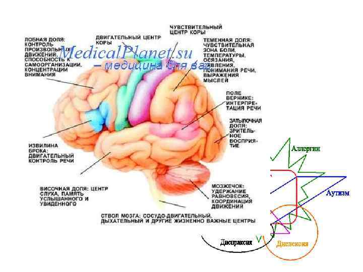 Причины диспраксии: поражение • • • Лобных долей Теменных долей Мозжечка Мозолистого тела Связей между отделами ГМ
