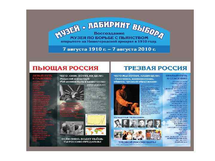 Выставка-музей к 105 – летию Нижегородского «Музея по борьбѣ съ пьянствомъ» 7 августа 1910 -2015 гг. Трезвость – русская традиция Просвет-проект нижегородского отделения Союза борьбы за народную трезвость (СБНТ)