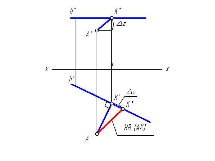 Достроить фронтальную проекцию отрезка CD, пересекающего отрезок АВ в точке К. • Точка К принадлежит [АВ], точка К принадлежит [CD] • Следовательно: точка К – общая для [АВ] и [CD].
