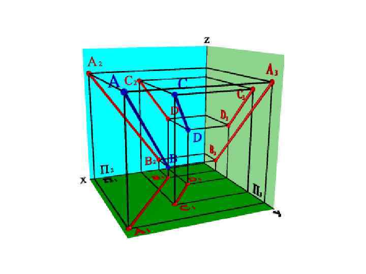 Прямые линии в пространстве могут быть параллельными, пересекающимися и скрещи вающимися. Рассмотрим подробнее каждый случай. 1. Параллельные прямые линии. Параллельными называются две прямые, которые лежат в одной плоскости и не имеют общих точек. Проекции параллельных прямых на любую плоскость (не перпендикулярную данным прямым) - параллельны. Если AB//CD то A 1 B 1//C 1 D 1; A 2 B 2//C 2 D 2; A 3 B 3//C 3 D 3 (рис. 33). В общем случае справедливо и обратное утверждение.