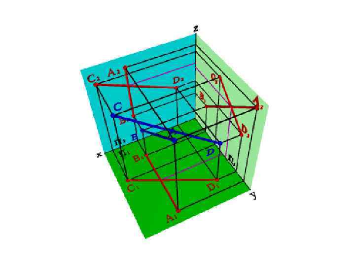 В общем случае справедливо и обратное утверждение, но есть два частных случая: 1. Если одна из прямых параллельна какой-либо из плоскостей проекций, например, профильной (рис. 36), то по двум проекциям невозможно судить об их взаимном расположении. Так горизонтальная и фронтальная проекции отрезков АВ и СД пересекаются, причем точка пересечения проекций лежит на одной линии связи, однако сами отрезки не пересекаются, потому что точка пересечения профильных проекций этих отрезков не лежит на одной линии связи с точками пересечения их горизонтальной и фронтальной проекций.