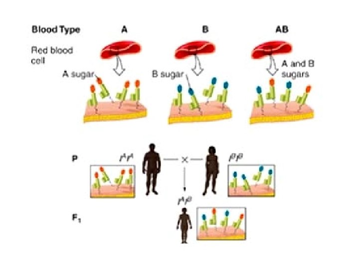 Тест § Группы крови человека (фенотип) обозначают 0, А, В и АВ. § Почему тогда определяющие их аллели обозначать как А, В и 0 – неверно? § Три аллеля гена I : IА, IВ и i 0 IА > i 0 IВ > i 0 IА, IВ - кодоминирование