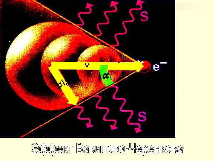 Если частица движется быстрее, чем распространяются волны в среде, то соответствующие элементарным волнам сферы пересекаются, и их общая огибающая (волновая поверхность) представляет собой конус с вершиной в точке, совпадающей с мгновенным положением движущейся частицы. Нормали к образующим конуса определяют волновые векторы, т. е. направления распространения света. Угол , который составляет волновой вектор с направлением движения частицы, удовлетворяет соотношению: