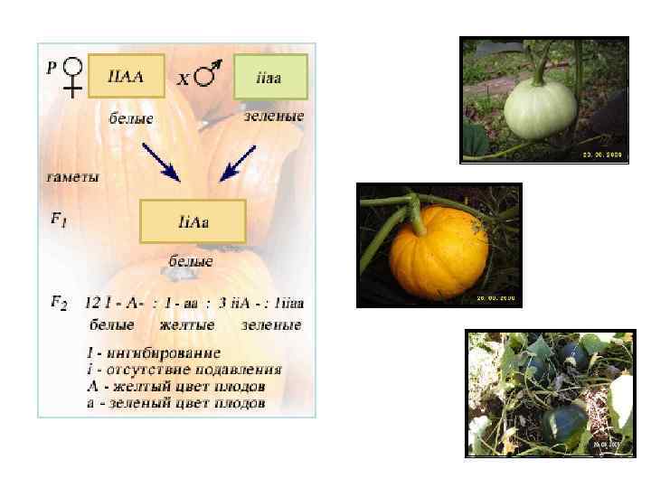 У тыквы имеется ген, который в доминантном состоянии подавляет окраску плода.