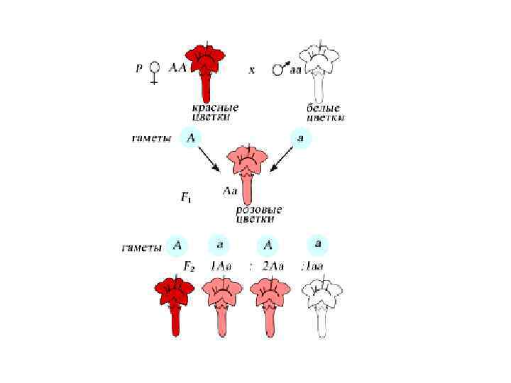 Промежуточное наследование при неполном доминировании АА аа Аа