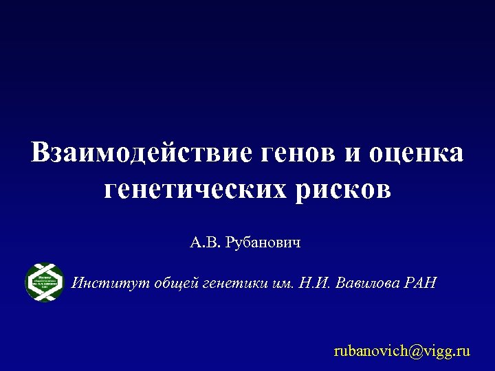 Взаимодействие генов и оценка генетических рисков А. В. Рубанович Институт общей генетики им. Н. И. Вавилова РАН rubanovich@vigg. ru