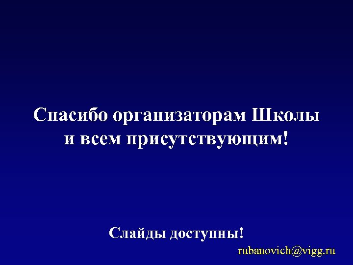 Спасибо организаторам Школы и всем присутствующим! Слайды доступны! rubanovich@vigg. ru
