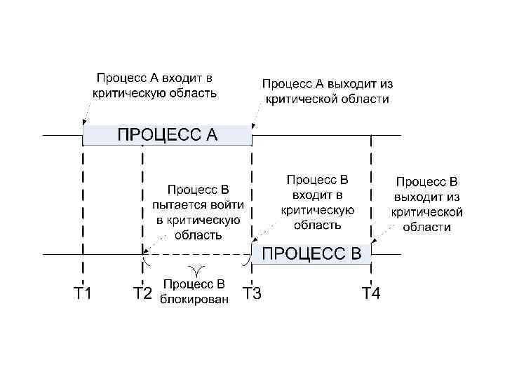 Для того, чтобы обеспечить нахождения только одного процесса в критической области каждый процесс обязан: При входе: • проверить есть ли кто в критической области; • объявить о том, что он находится в критической области (запретив при этом доступ в критическую область другим процессам). При выходе сообщить, что в критической области больше никого нет (разрешив тем самым доступ к критической области другим процессам). Если проверке доступности критической секции процесс обнаружил, что она недоступна, то он может: • продолжать проверять доступность критической секции; • заблокироваться и ждать сообщения от операционной системы, что критическая область освободилась. Первый способ называется активным ожиданием (спин-блокировкой) и сопровождается нерациональным использованием процессора.