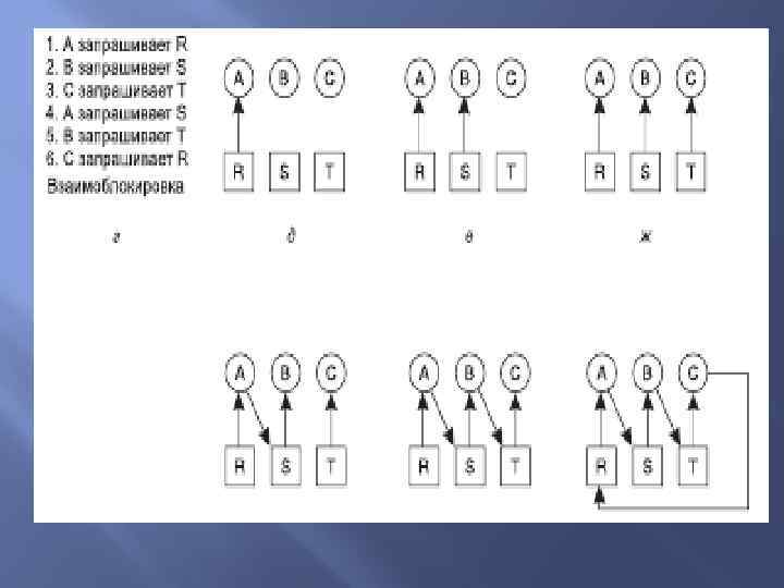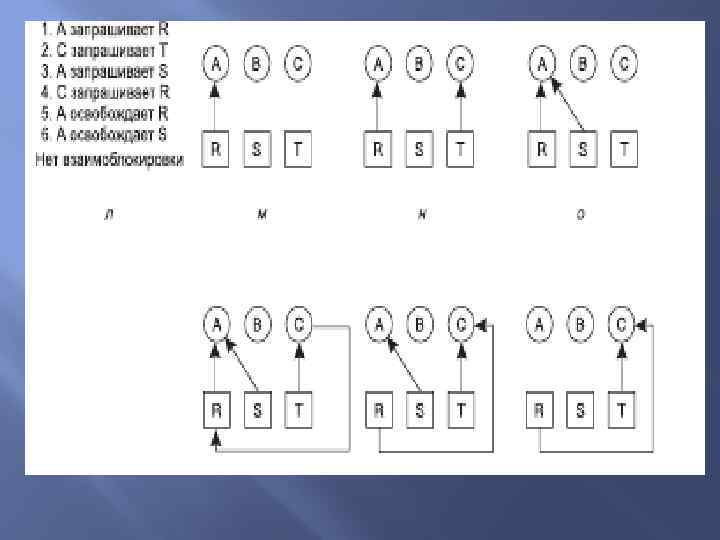 Существуют также: 1. Двухфазное блокирование; 2. Взаимоблокировка, не связанная с ресурсами; 3. Зависание.