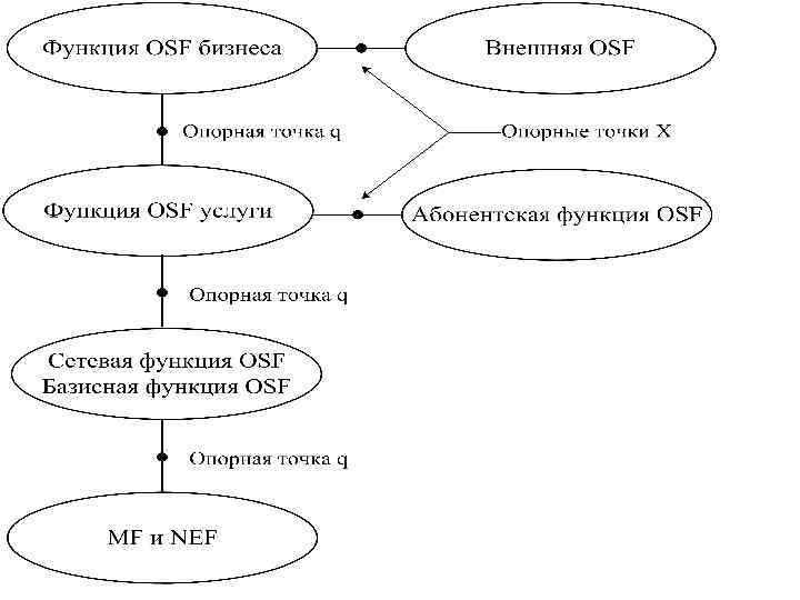 Связь между логическими блоками функций, выраженными как опорными точками NEF OSF MF QAFq 3 QAFqx WSF Не есть TMN MF QAFq 3 q 3 qx OSF qx q 3 q 3, x(a) q 3 f QAFqx WSF qx Не есть TMN f f m(b) g(b, c) m(b) (a) – Опорная точка x применяется только в том случае, если каждая функция OSF находится в разных сетях TMN. (b) – m и g являются опорными точками не-сети-TMN. (c) – Опорная точка g лежит между функциями WSF и пользователем-человеком. Примечание. – Любая функция может передаваться на опорную точку не-сети. TMN. Эти опорные точки не-сети-TMN могут быть стандартизованы другими группами/организациями для конкретных целей.
