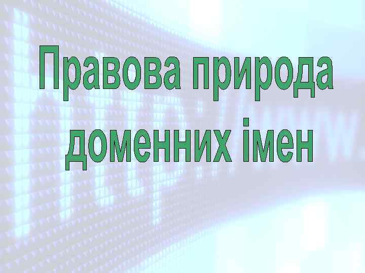 Вже ні для кого не секрет, що сьогодні всесвітня мережа Інтернет відіграє у бізнесі далеко не останню роль, адже успішність буде там, де товар, робота, послуга користуватимуться найбільшим попитом. З цією метою зацікавлені суб’єкти створюють для себе Інтернет-сторінки – веб-сайти, через які забезпечується доступ юридичних та фізичних осіб до інформаційних ресурсів, що містяться на цьому сайті. Кожний сайт має свою унікальну адресу, яка залежить від того, в якій частині адресного простору мережі Інтернет (а іншими словами – в якому домені) він знаходиться. Кожний домен має свою назву – доменне ім’я, що використовується для адресації комп’ютерів і ресурсів в Інтернеті. Назва сайту складається із доменних імен від нижчого до вищого рівнів.