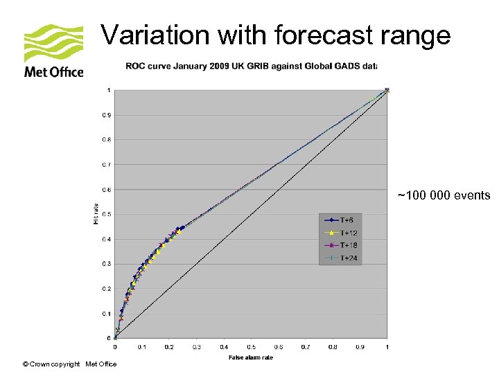 Variation with forecast range ~100 000 events © Crown copyright Met Office