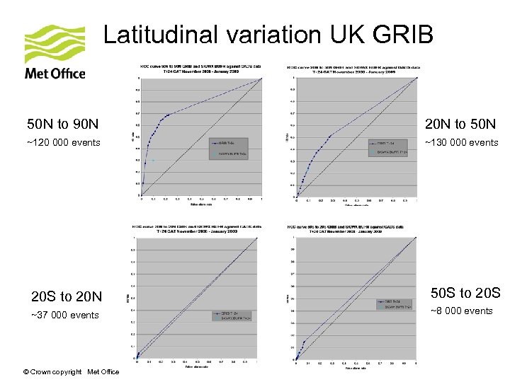 Latitudinal variation UK GRIB 50 N to 90 N 20 N to 50 N ~120 000 events ~130 000 events 20 S to 20 N 50 S to 20 S ~37 000 events ~8 000 events © Crown copyright Met Office