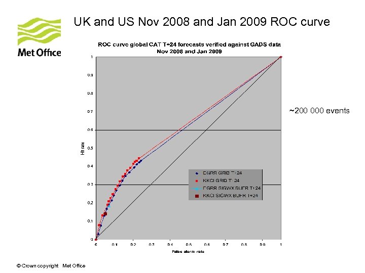 UK and US Nov 2008 and Jan 2009 ROC curve ~200 000 events © Crown copyright Met Office