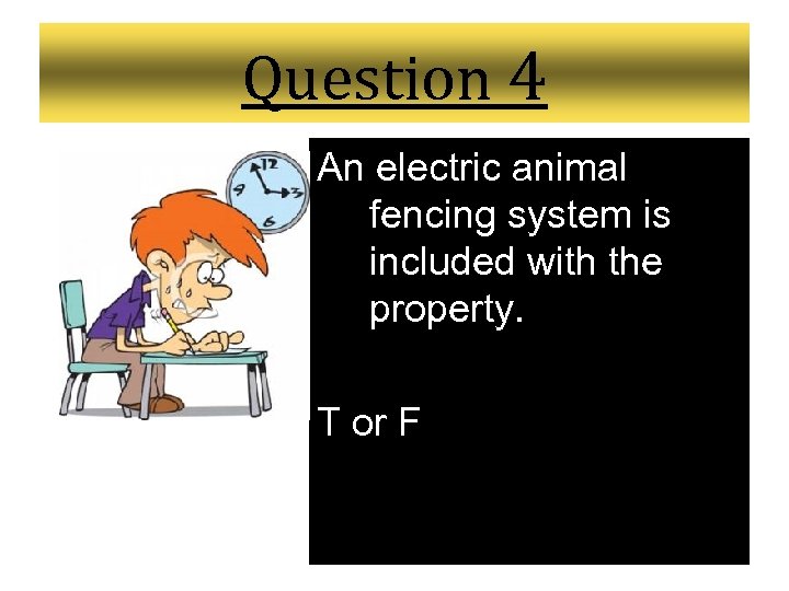 Question 4 An electric animal fencing system is included with the property. T or F
