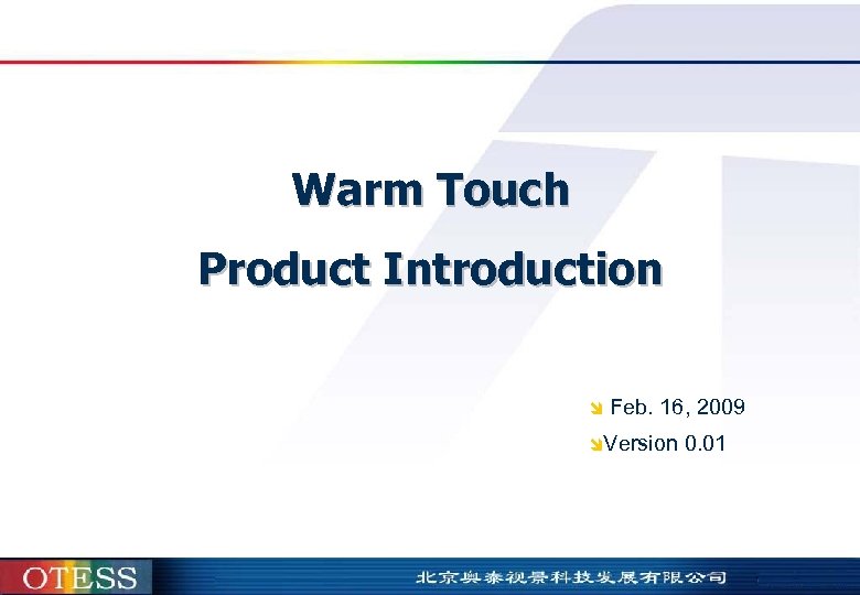 Warm Touch Product Introduction î Feb. 16, 2009 îVersion 0. 01