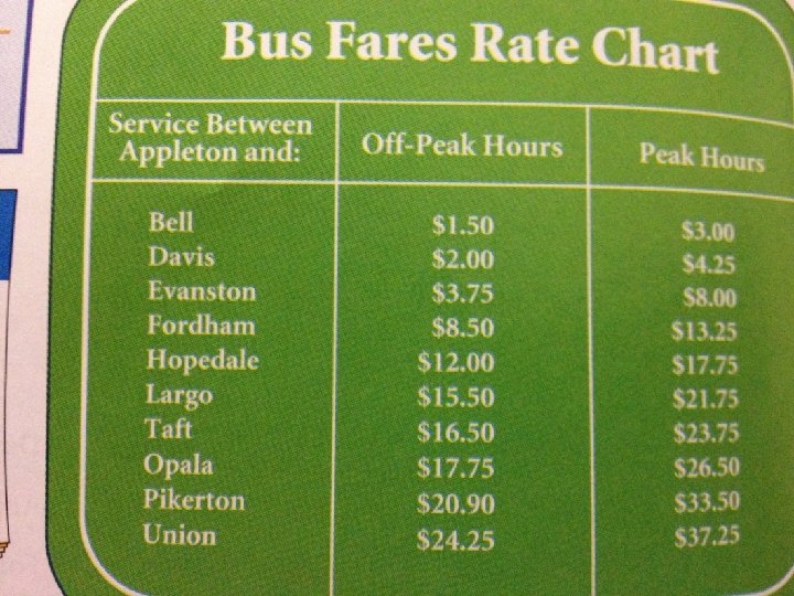 WE DO (bus fares) Find the bus fare Adults Children 1. 2 3 2. 3 0 3. 4 5 4. 2 0 To Bell Union Largo Evanston Trip 1 Round 1 1 Service Off Off Peak