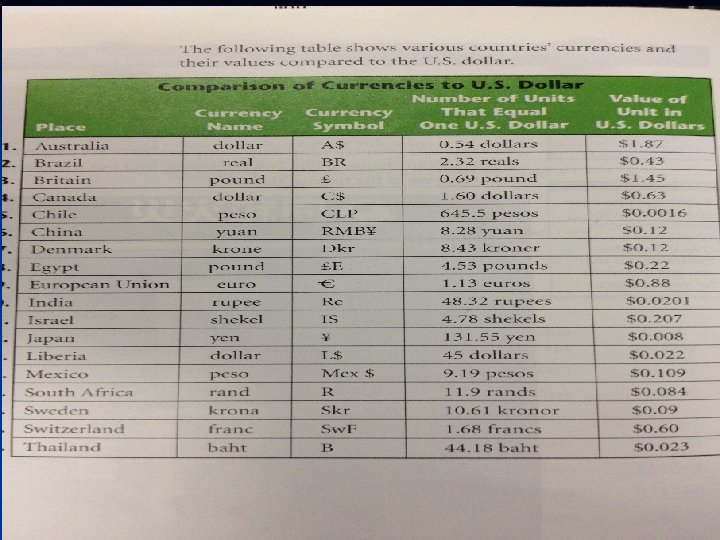 DIRECTIONS (Exchanging Currency from US) n Page 226 n n Find the country you are looking for Multiply n US dollars x exchange rate