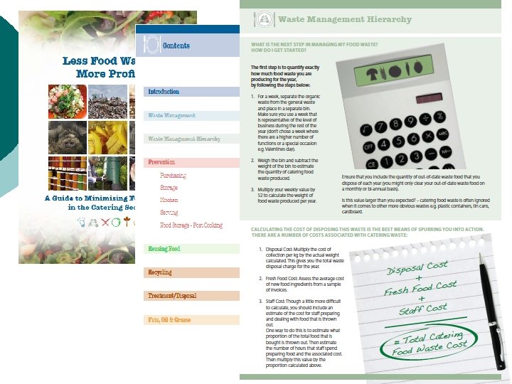 Food Waste Management One tonne of food waste l l l Costs € 200 to landfill Costs € 1800 to buy Costs € 200 to cook The solution is prevention!