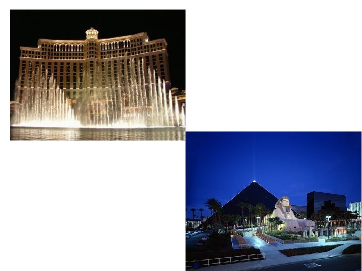 Explaining the growth of Las Vegas • Mormons first settled in the Las Vegas area in 1855, and the town of Las Vegas was established in 1905. • For the first part of the 20 th century it was just a stop along the railway, but it started to grow in the 1930 s when gambling was legalised. • The first hotels were built in the 1940 s. Members of criminal groups were involved in the running of some of them – the gambling meant large profits. • Las Vegas grew still further in the 1960 s and 1970 s, as people migrated here in search of work and tourism grew. • In the 1980 s and 1990 s it became known as a Convention Centre with hotels and conference centres hosting big corporate conferences and events. • The really big hotels came in the 1990`s. e. g. The MGM Grand, The Luxor and New York. The hotels have become like theme parks. Gambling is possible 24 hours a day. Weddings are possible 24 hours a day. Las Vegas is known as Sin City.