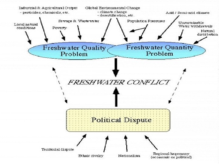 Water Conflict Water is a critical resource at an international level, with 261 international rivers covering almost one half of the total • land surface of the globe. It is linked to a variety of socio-economic factors, and has become prominent in literature on environment and international conflict. August 2004