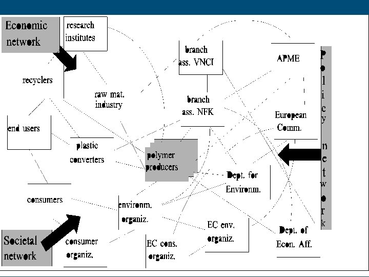 Networks § § § Policy networks: policy-actors and a political-administrative point of view Economic networks: economic actors and an economic/monetary perspective Societal networks: civil society actors and a socio-cultural perspective