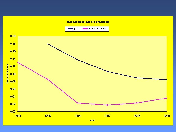 How to account for this l Less wastage of fuel and overpricing Fuel has ceased to go astray ; bills no longer bear an inflated price ; timely preventive maintenance makes the engiens run more smoothly l Optimising use of production capacity: – People consume water more days in the year ; – or more water per day person ; – or people abandon alternative sources and a greater number of people buy water from the piped system