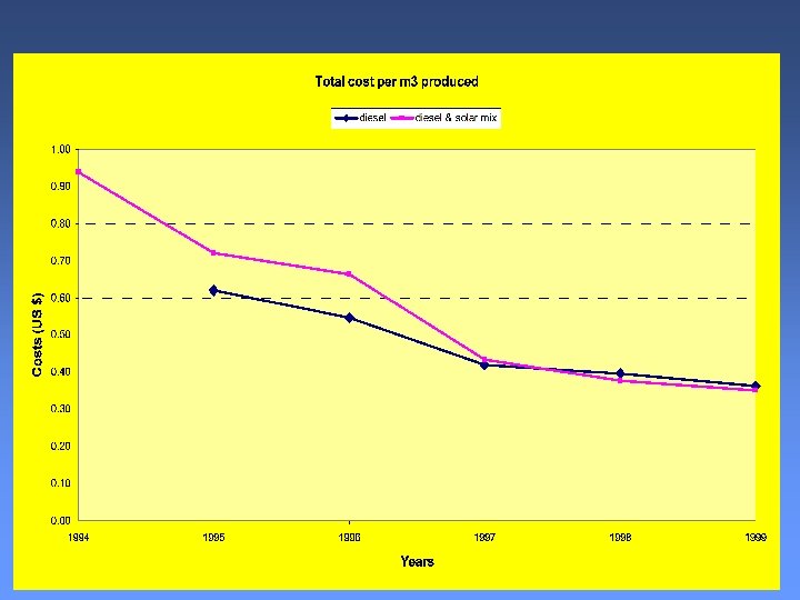The paradox l an additional charge of 20 fcfa/ m³ of water produced has reduced the per unit cost of production (on average for 9 small towns, over 5 years) l the cost of producing water has gone from 0, 65 to 0, 30 euros – despite a 50 % devaluation in 1994 – inflation estimated @ 5% – i. e. in real terms, by a factor of 4