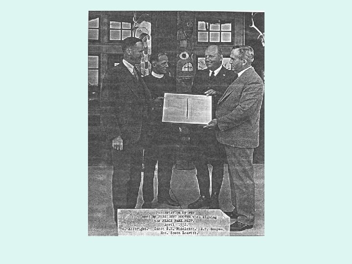 Negotiations • Both sides began to lobby their prospective Governments • By December 8, 1931 the House of Representatives had passed a bill to establish “ the Waterton-Glacier International Peace Park” and was passed by the Senate April 25 th 1932 • A similar bill was passed by the Canadian Government in 1932