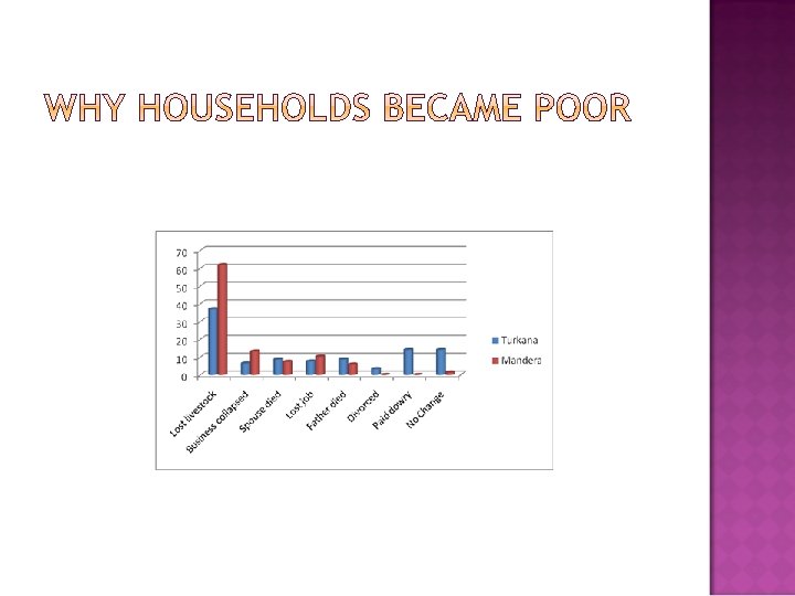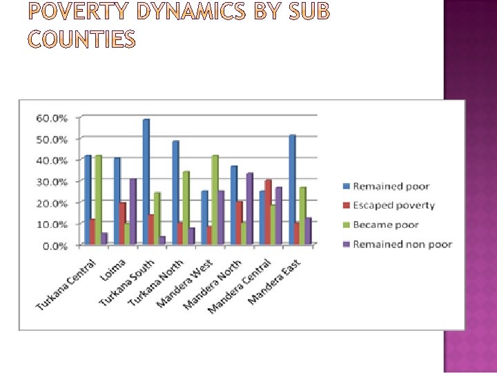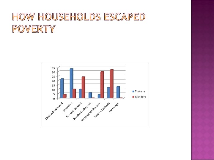 1. 2. 3. 4. Different pastoral communities follow different pathways out of poverty Conventional methods of assessing poverty tend to exaggerate pastoral poverty Loss of livestock has been a major cause of pauperization among pastoral households of northern Kenya Income diversification and education were important in helping pastoralists of northern Kenya escape poverty