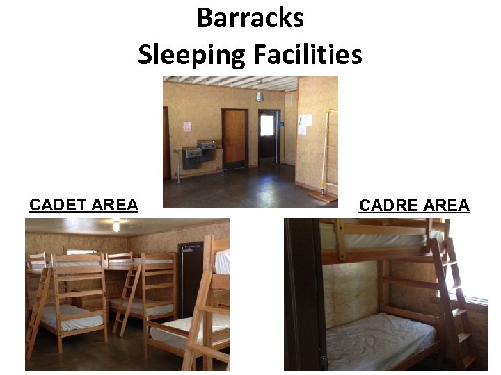 Barracks Sleeping Facilities CADET AREA CADRE AREA