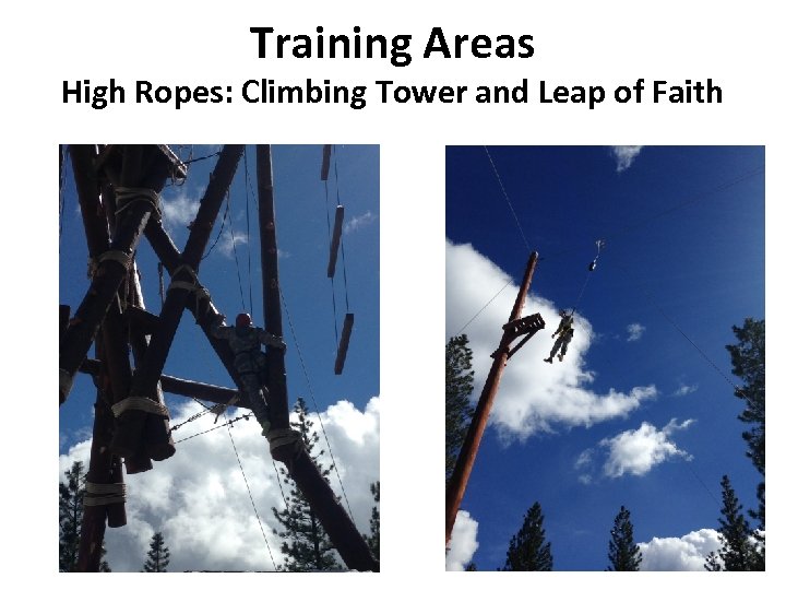 Training Areas High Ropes: Climbing Tower and Leap of Faith
