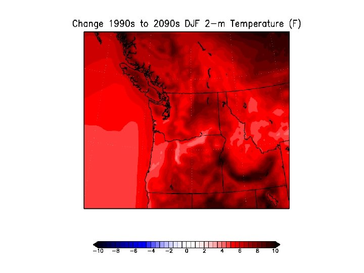 UW Regional Dynamical Downscaling • Have completed a number of 100 -year regional climate simulations using the WRF model at 12 -km grid spacing. • Driven by a half-dozen different climate models and emission scenarios.