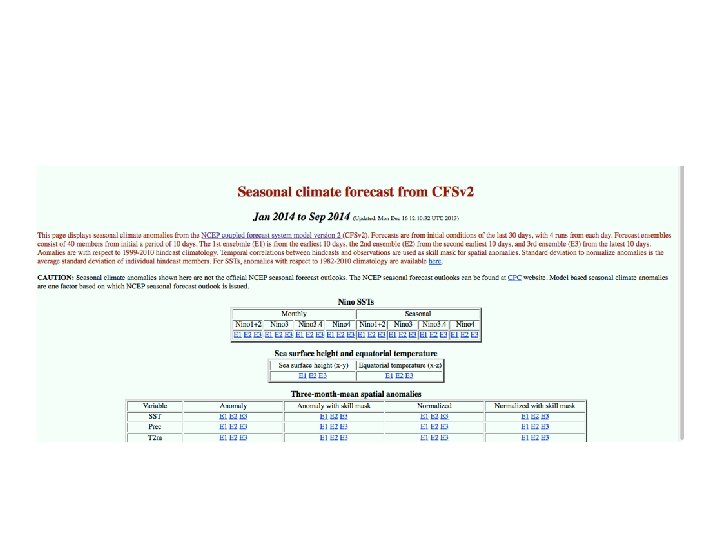 Climate Simulations • Will be running with many more climate model driven simulations. • Now evaluating the use for monthly and seasonal prediction at high resolution using output from the NOAA CFS model, a coupled atmosphere/ocean modeling system. • Is there useful predictive skill at 1 -9 months for mean quantities?