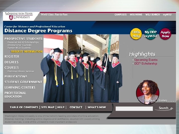 Models of Developing Online Services ü Develop your own online services § Separate services for distance students ü Collaborate/Integrate within an institution § Online services used by all students ü Collaborate within a system of institutions § Public systems already linked ü Collaborate among multiple institutions (CTDLC, Jesuit Net, Ohio Learning Network) ü Outsource services