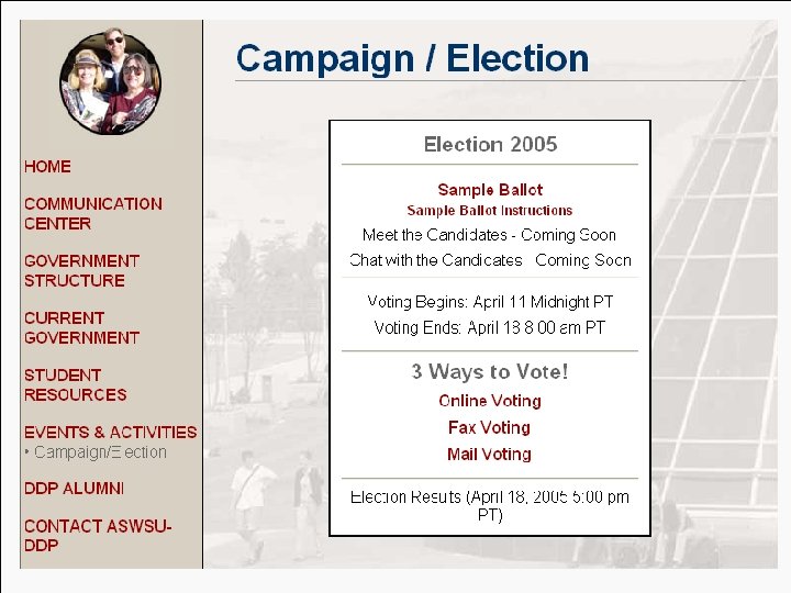 Connecting Students: Hometown Locator ü Students who wish to communicate with other students will enter their personal info and zip code and other students geographically close, who’ve also entered their info, will be identified. ü Student Government project