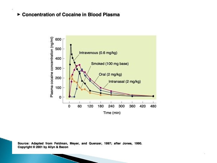 Route for administration -Time until effect intravenous 30 -60 seconds inhalation 2 -3 minutes sublingual 3 -5 minutes intramuscular 10 -20 minutes subcutaneous 15 -30 minutes rectal 5 -30 minutes ingestion 30 -90 minutes transdermal (topical) variable (minutes to hours)