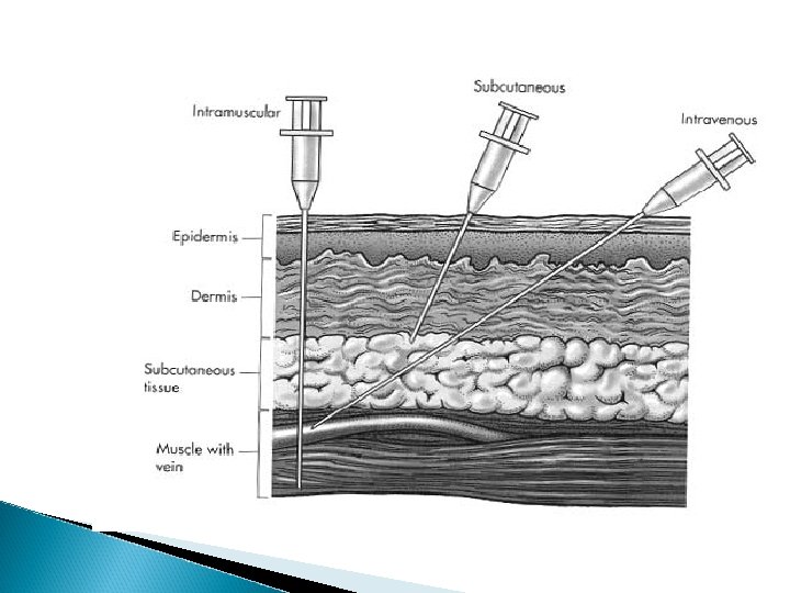 B. Parenteral (Injection) ◦ ◦ ◦ Intravenous Intramuscular Subcutaneous Intracranial Epidural Intraperitoneal